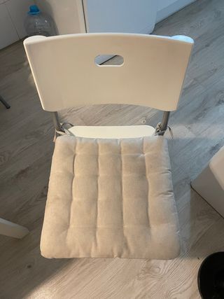 Silla plegable de la marca IKEA, con un cómodo cojín negro. - Estructura de metal y plástico. - Asiento y respaldo en color blanco.