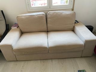 Sofá KIVIK de Ikea, con capacidad para dos personas. Su diseño es moderno y sus cojines son muy cómodos. - Tapicería de tela y completamente desenfundable para lavar. - Color beige neutro. Esta en perfecto estado, par de años de uso. Se entrega desarmado