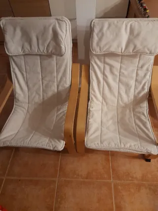 Cómoda silla infantil Poang de IKEA, perfecta para los más pequeños. Su diseño combina un armazón de madera con un tapizado suave. - Estructura de madera curvada. - Tapizado de tela acolchado. Tengo 2 unidades, el precio por unidad son 30 euros. El lote de 2 unidades son 50 euros. Los sillones están en muy buen estado, tan solo por la parte de detrás la tela del cojin esta un poco desgastada sin ser ve en las fotos, para coser un poco, y uno de los sillones tiene alguna mancha en el respaldo, que como está detrás no se ven.