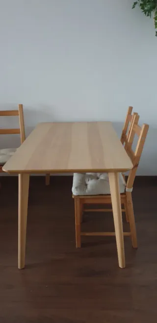 Mesa de madera LISABO Ikea con 4 sillas IVAR