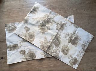 Conjunto de dos fundas para cojín con un bonito estampado floral. - Medidas: 70x40 cm. - Diseño en tonos beige y gris. - Confeccionadas en tela.