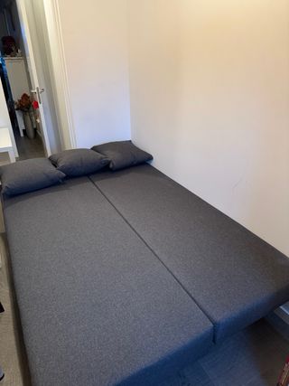 Sofá cama de IKEA, ideal para espacios pequeños. Se encuentra en buen estado y es muy cómodo. - Perfecto para invitados. - Diseño sencillo y elegante. - Dos cojines incluidos.