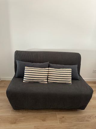 Sofá cama de Ikea en color gris. Se adapta a diferentes espacios y usos. No incluye los cojines - Funda de tela. - Incluye cojines decorativos.