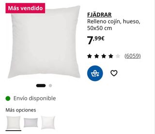 Pack de dos rellenos para cojines de la marca Ikea, modelo FJÄDRAR. - Medidas: 50x50 cm. - Color blanco. -Uno esta sin abrir - Se regalan fundas de cojines 4,9 en vinted +90 valoraciones belenperez92