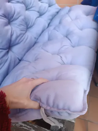 Vendo Set de cojines grandes para tu terraza o patio. Tengo 4. Los vendo juntos o separados. 20€ cada uno. Costaron 60€ cada uno. Son bastante cómodos y resistentes. - Diseño acolchado. - Tejido suave y resistente. - Caben dos personas por cojin. No son de ninguna marca específica.