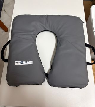 Cojín de gel diseñado para el confort y la prevención de escaras. - Diseño ergonómico en forma de U. - Funda extraíble y lavable. - Asas laterales para facilitar su transporte. Como nuevo. Muy poco uso (menos de un mes)