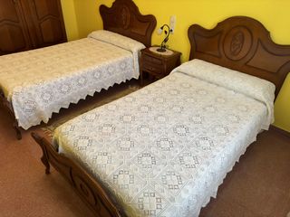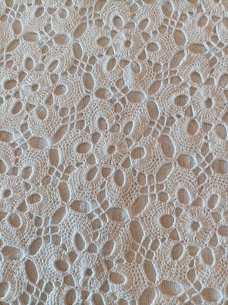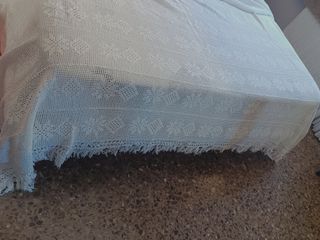 Preciosa colcha antigua hecha a mano con ganchillo.el siglo pasado en Castellote ,por una persona mayor ,está sin estrenar , preciosa, de perle , medidas aproximadas 280x180 toda artesanal..muy rebajada a 35_€. Regalo tira igual dibujo de 110x15 cm. Bonito regalo ,son cosas únicas que embellecen una casa ,y que ya van desapareciendo.ultima rebaja a 30€... - Medidas aproximadas: 280 x 180 cm. - Diseño intrincado con motivos circulares. - Acabado delicado y artesanal.