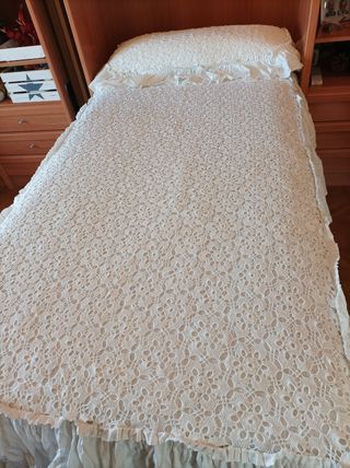 Colcha ganchillo con volante de tergal para cama de 1,05m