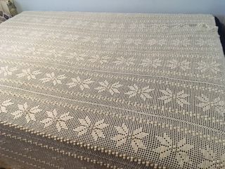 Antigua colcha hecha a mano ganchillo, 2 años de trabajoen color crema, gran tamaño 2x2,40m. Sin apenas uso. Punto en perfecto estado. Algún signo de antigüedad en color. Tal como muestro en las fotos. De ahí el precio.