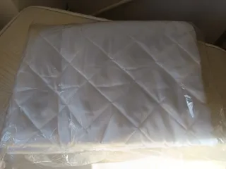 Colcha de entretiempo acrílico para cama de 90cm. Colores crudo y azul cielo. De la tienda El Corte Inglés. Hago lote oferta con la colcha, todo por 10€.