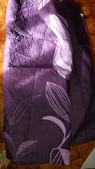 Son dos piezas ka colcha de 1,80x2,00 toda forrada y la tela es buena, y el cubre que es mas para invierno, haciendo contraste de dibujo con pasamaneria y borlones en las esquinas.Esta hecho en el Corte ingles, y lavado en tintorería. Es un capricho para quien tenga una cama grande. HAZ UNA OFERTA RAZONABLE