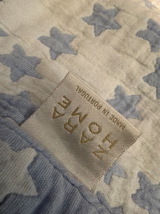 Colcha de Zara Home con un bonito estampado de estrellas en tonos azules y blancos. Perfecta para añadir un toque acogedor a cualquier habitación. - Diseño de estrellas. - Acabado suave y ligero. cama 90 cm