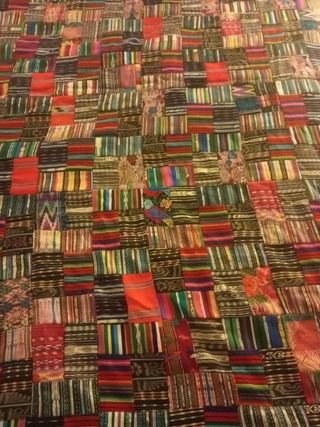 colcha de cama o telar decorativo. artesanal, 100% hecho a mano, comprado en Guatemala. hecho a base de trozos de guipiles.