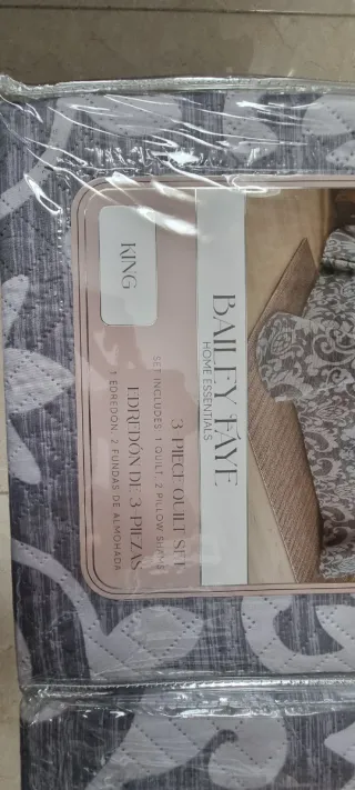 Colcha para cama tamaño King con un diseño moderno en tonos grises y blancos. Ideal para añadir un toque de estilo a tu dormitorio. - Incluye funda de almohada. - Material de poliéster de alta calidad.
