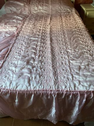 Colcha de cama en color rosa con un bonito diseño. - Acabado satinado. - Medida para cama de 90.