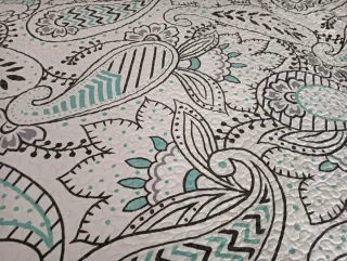 Colcha bouti con un bonito estampado paisley en tonos blanco y verde . Su diseño aporta un toque de color y estilo a cualquier habitación ,cama 90 cm - Diseño paisley. - Colores: blanco y Verde - Material: tela.