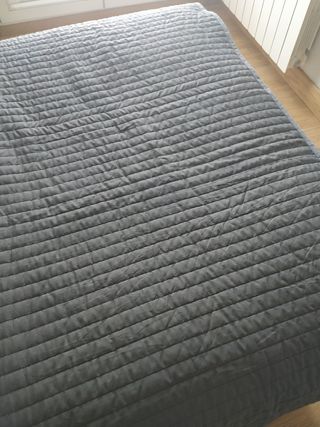 Preciosa colcha para cama de 135 cm con diseño moderno y actual para darle un toque de estilo a tu dormitorio. Tiene 238cm de ancho. Se puede decir que es prácticamente nueva, y aunque me da pena venderla al final me quita espacio en el armario.