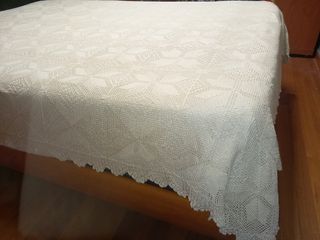 Colcha grande de ganchillo hecha a mano. Blanca. Antigua. Mide: 250 × 230 cm. Impecable.