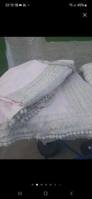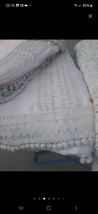 Conjunto de dos colchas rústicas para cama de 90cm. Se encuentran en perfecto estado, como nuevas. Recoger en mano en dirección Linares - Diseño con detalles de encaje. - Aportan un toque acogedor a la habitación.