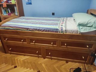 Se vende cama individual de madera en buen estado. - Medidas: 90x200cm. - Estructura de madera. - Se vende conjunto (estructura+colchón)