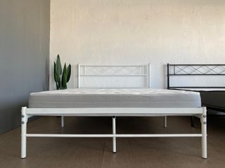 Vendo dos colchones de cama con sus somieres y cabeceros. - Medidas: 90x190 cm. - Estructura de metal y láminas de madera.