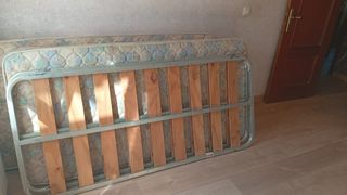Se vende somier y colchón de 90 cm. - Estructura del somier de metal. - Láminas de madera. - Colchón de tela.