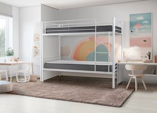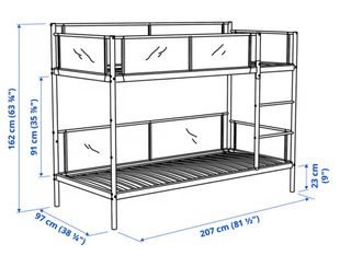 Litera Vitval de Ikea de metal blanco con tela gris 90x200 cm. Muy poco usada, se vende con 2 colchones.
