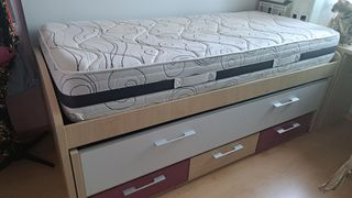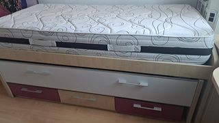 cama nido extraíble de 90x190 con colchón de abajo de 15 cm alto