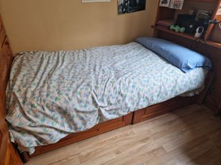 Cama nido de 90 cm con dos cajones grandes debajo. - Cajones con medidas aproximadas de 70x55 cm. - Estructura de madera. - Puede incluirse el colchón aunque no es el original