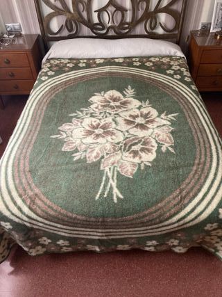 Manta suave y cálida con un bonito estampado floral. Medidas 160cm de ancho * 218cm de larga - Diseño ovalado central con flores. - Bordes con rayas concéntricas. - Ideal para colchones de 80 o 90 cm.