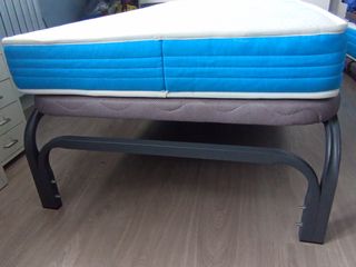 Se vende somier tipo canguro con colchón de 90x190 cm. - Estructura del somier de metal y laminas. - Colchón con funda de tela.
