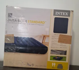 Colchón de matrimonio de aire Intex de alta gama, modelo Dura-Beam Deluxe Comfort-Plush Mid-Rise. Características destacadas: - Medidas: 137cm de ancho x 191 de largo x 33 de alto. - Soporta 272 kg. - Tecnología Fiber-Tech: Miles de fibras internas para un soporte y firmeza superiores, como un colchón real. - Bomba eléctrica integrada: Se infla y desinfla automáticamente en 3 minutos. - Superficie aterciopelada: Material flocado suave al tacto y resistente al agua. - Ideal para invitados: Práctico, cómodo y fácil de almacenar. PVP: 60€ Caja deteriorada.