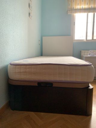 Se vende conjunto de cama compuesto por canapé y colchón. No comprado en tienda lowcost. - Canapé con base de tela y estructura de plástico. - Colchón con tejido de grafeno.