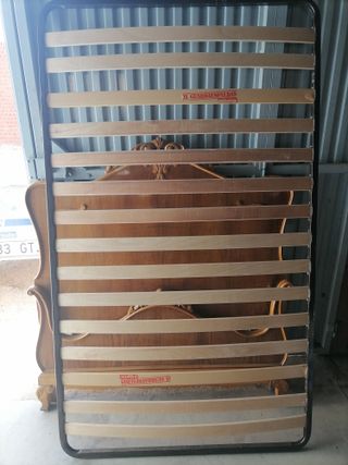 Estructura de somier Pikolín con lamas de madera. Se encuentra en buen estado. - Ideal para colchón de 105 x 190 - Refuerzo lumbar - con 4 patas Stone Pik - Lamas de madera resistentes. - Estructura metálica robusta.