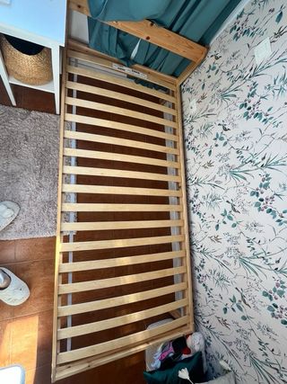 cama de madera Neiden 90x200cm, mas somier de laminas Luroy, mas colchón, todo en buen estado