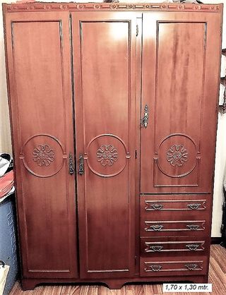 Alcoba completa compuesta por: 2 camas de 90cm, con colchon y sabanas, armario 3 puertas y 4 cajones, sinfonier de 100x170cm. mesilla de noche, 2 estantes de colgar.