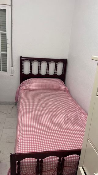 Dos camas individuales de madera con colchón. Vendo dos camas individuales de madera maciza, sólidas y bien conservadas. Incluyen colchones, listas para usar. Diseño clásico que encaja en cualquier dormitorio, ideal para habitación infantil, juvenil o de invitados. Se pueden vender juntas o por separado. 40€ cada una