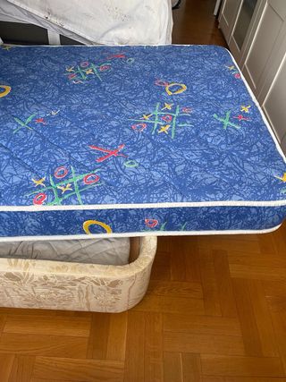 Se vende somier de la marca Body Flex junto con un colchón. - Somier con láminas de madera. - Estructura metálica. - Colchón con diseño estampado.