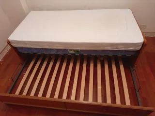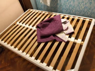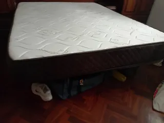 Se vende somier de madera de calidad y colchón de 135x190. En muy buenas condiciones. El somier mide 149 de ancho. A recoger en Galdakao.