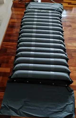 Colchón antiescaras de aire con compresor de la marca APEX Domus 2+. - Sistema de redistribución de presión alternamente. - Para personas que tengan que estar mucho tiempo en cama con problemas de úlceras. - Tejido de alta calidad - Prácticamente nuevo No hago envíos por wallapop