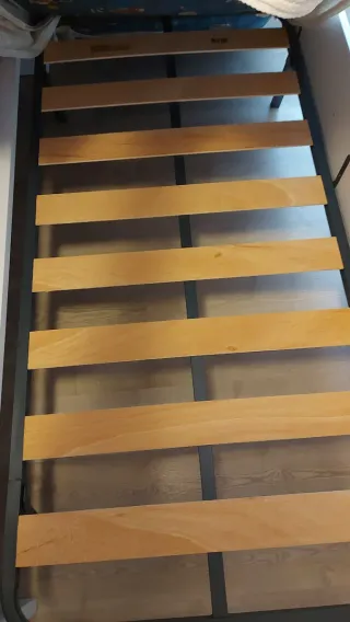 Canapé abatible con somier de láminas de madera en medidas 160x200cm Colchon Hyllestad Ikea en medidas 135x190cm En las últimas fotos se puede ver el precio original del canapé, fueron 559€