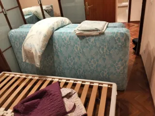Se vende somier con colchones, todo el conjunto incluido en el precio. - Estructura de madera. - Tapizado en tela.