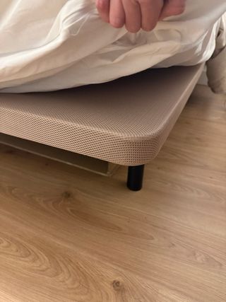 Base tapizada para cama de 180x200 cm. Proporciona una superficie firme y uniforme para tu colchón. Tapizada en tejido 3D con agujeros de ventilación. 6 patas por cada lado para un mayor apoyo. Dos bases de 90cm unidas por dos pletinas metálicas. - Diseño moderno y elegante. - Patas negras resistentes.