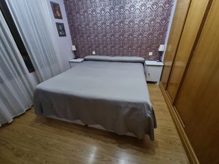 Conjunto de muebles para habitación. - Canapé abatible con tapadera ultra transpirable de 135x190 cms. - Colchón Viscolatex 135x190 cms. - Cabecero de madera contrachapada. - Mesita de noche de madera contrachapada con tres cajones, medidas 55x50x35 cms alto, ancho y fondo respectivamente. PRACTICAMENTE NUEVA, la habitación cuenta con apenas 9 meses de uso.