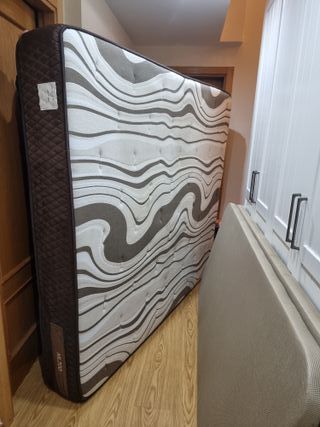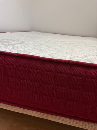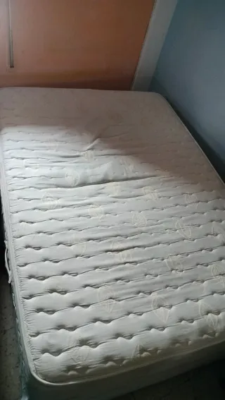 Descripción Colchón de 135x190 cm con somier.Colchón con 750 muelles. Diseño geométrico en tonos azules y blancos. El colchon lo vendo porque me he comprado un colchon mas duro, costó unos 900 euros y el somier 120 el somier Tapi Flex esta perfecto es Azul y patas y lo quito por que tengo canapé y colchon nuevo, colchon esta diseñado para deportistas y mejorar el descanso... Quien lo quiera que venga a por el pesa un monton y tiene 32 cm de ancho. Características Material TelaMedidas Anchura 135 cm Altura 32 cm Profundidad 190 cm Precio Negociable Urge por mudanza