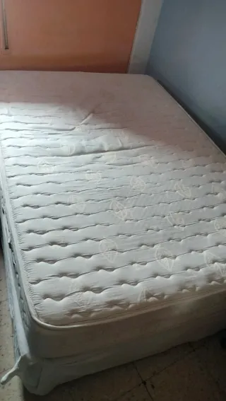 En perfecto estado. Se vende colchón y base tapizada para cama de 135 cm. - Colchón con tejido de alta calidad. - Base tapizada resistente.