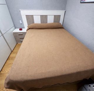 Se vende cama completa de 135x190 cm, lista para usar. - Incluye colchón. - Somier con patas.