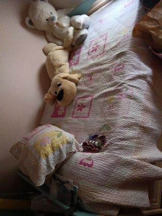 con dos cajones abajo regalo colchón de 105 y colcha y JGO cama de helow Kitty