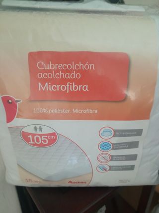 Cubrecolchón acolchado de microfibra Auchan, ideal para proteger tu colchón. Es de color blanco y tiene un tacto extra suave. - Medidas: 105cm. - Acolchado confortable. - Sin ruidos. El precio costó 15.99, lo vendo por 12 precio no negociable