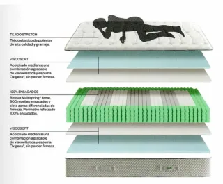 Colchón con tejido Aloe Vera y capa viscoelástica para mayor confort. - Tejido exterior con Aloe Vera. - Capa viscoelástica. - Diseño acolchado.